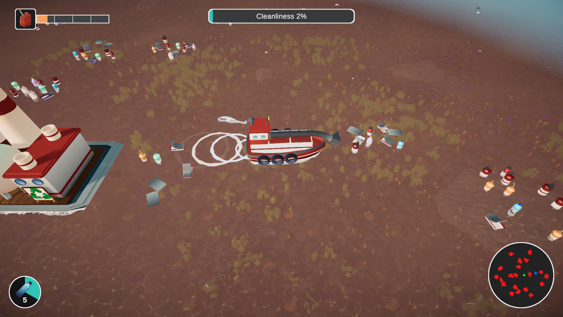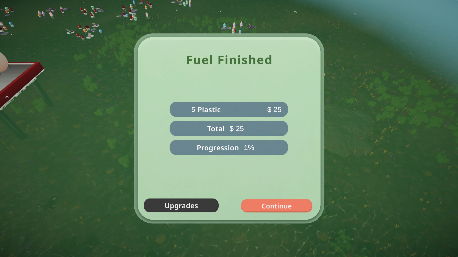 Sail through a limited ocean area, collect floating garbage, and manage your fuel wisely. Each run lasts until your fuel runs out — then it’s time to cash in, upgrade your ship, and head back out stronger than before.